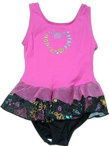 Girls Jacques Moret, Your tiny dancer will get a kick out of this girl's skirted dance leotard in Pink and Black Peace sign graphics. Body: 100% Nylon. Skirt: 100% Polyester. Machine wash. Imported